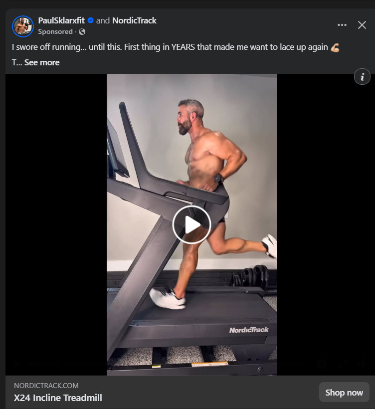 And immediately all of my Facebook ads become exercise equipment. Literally my next click was to go to Facebook and what do I see: