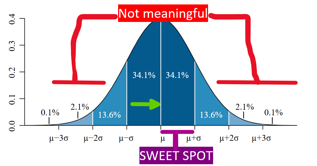 A school’s primary motivation is to take any of the kids that are struggling to get to this sweet spot and nudge them along. The farther you are from the middle the less “important” you are when you consider education’s motivations. Remember, mediocrity.